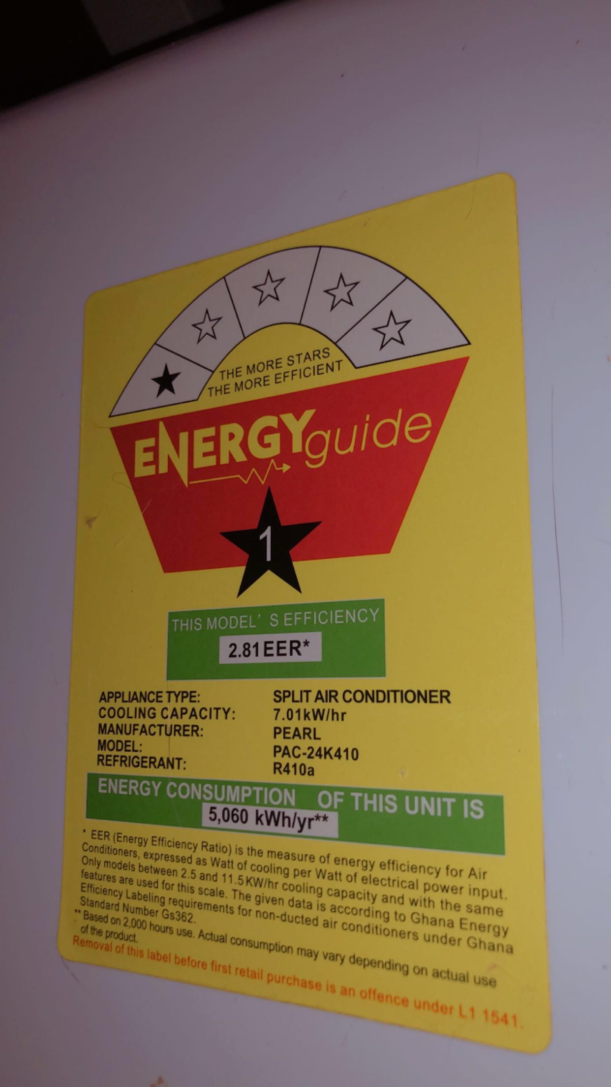 Slightly used 2.5hp Pearl brand AC for sale. Comes with all settings intact.